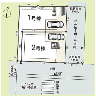 号棟番号:1号棟 .5h/4m 建物面積に車庫部分約10.93平米含む 土地面積に引込用地部分約7.9平米含む 都市計画道路(3・4・1早川本蓼川線、計画幅員約16m)近接 |